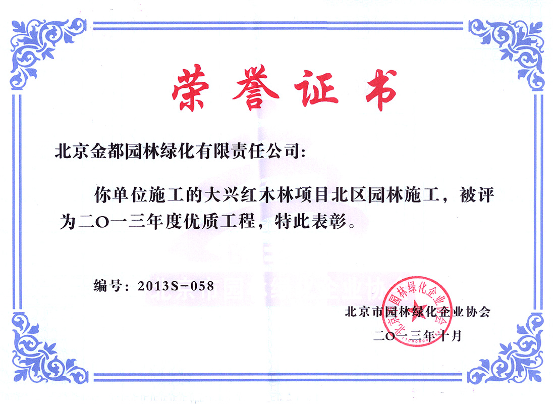 大興紅木林項目北區園林施工,開工時間:2013年3月1日,竣工時間2013年5月31日。工程位于北京市大興區黃村鎮,工程主要包括水系、木廊架、景觀房、碼放山石、地面鋪裝、綠化、電氣、給排水等。工程中綠化種植苗木要求比較高,綠化苗木種植密度較大,選擇的苗木都是較大規格苗木,且都是樹形較好的甲級苗木,喬木更是要求全冠進行栽植,修剪不得大于總體樹形的1/4。而且為了提高小區內整體園林景觀效果,在園區綠地條件允許的范圍內再起地形,高度普遍在1-2M,地形最高點達到3M,由于各塊綠地面積不算太大使得地形較陡,苗木栽植與養護難度增大。金都公司憑借多年經驗及創新采取多種方法確保了苗木特別是全冠栽植的落葉喬木成活率達95%以上,獲得了建設單位的好評。景觀房是鋼筋混凝土的結構,要求較高,公司采用特殊技術進行回填土上進行施工,確保景觀房不下沉。