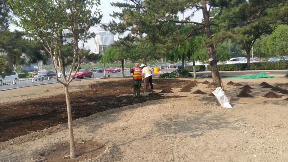 復興門增彩延綠示范工程--該工程是北京市首批增彩延綠科技示范重點工程之一,改造面積為1.8萬平方米,項目于2015年5月5動工,目前建設主體基本完成。該項目應用多種新優園林綠化科技成果,包括新優增彩延綠植物品種、園林綠化廢棄物土壤改良和痕量灌溉節水技術等。復興門橋工程充分體現了北京市園林綠化局倡導的增彩延綠、節能減排、科技示范的理念和宗旨。